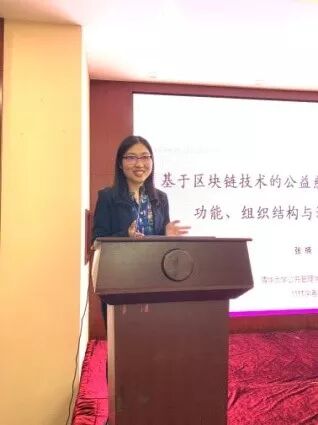 清华大学公共管理学院博士后张楠以“基于区块链技术的公益慈善创新模式研究:功能、组织结构与影响因素探析”为题发表主题演讲,介绍了我国公益慈善变革史、区块链技术及特征、区块链慈善的学术和实践研究,从资源整合与信息公开两个维度构建起区块链公益的理想模式。张楠强调区块链不仅仅是一种技术更能带来组织变革。社会认知与参与,技术发展,政府监管与法律边界都会影响到区块链慈善的发展。